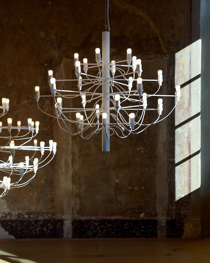 Et af de mest kendte designs fra Flos er 2097-lysekronen, skabt af Gino Sarfatti. Først lanceret i 1958 er dette design blevet en milepæl inden for moderne belysning. Med sit slanke, industrielle udtryk og varme, stemningsfulde glød er 2097 stadig et tidløst mesterværk, tilgængeligt i flere overflader som krom og messing.