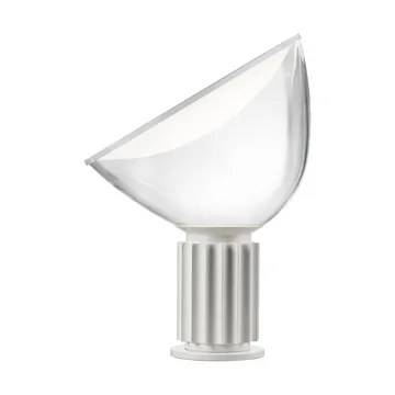 Taccia bordlampe LED 64,5 cm fra Flos er en tidløs designklassiker formgivet af Achille og Pier Giacomo Castiglioni i 1962. Lampen spreder et blødt, reflekterende lys takket være sin metalreflektor og den mundblæste, justerbare skærm i klart glas. Med indbygget LED og elektronisk dæmper på ledningen kan du nemt skabe stemning i stuen eller soveværelset. En elegant og funktionel detalje, der fungerer lige så godt som læselampe ved lænestolen som som varm belysning på sidebordet.