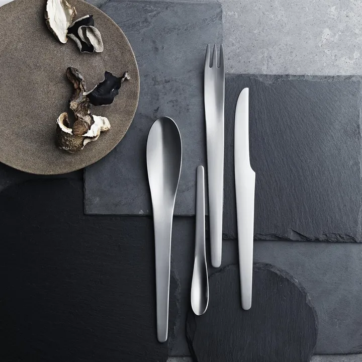 Skab en moderne, men samtidig klassisk borddækning med Arne Jacobsen bestiksæt fra Georg Jensen. Bestiksættet er inkluderet i serien, der blev designet i 1957 af den kendte designer og arkitekt Arne Jacobsen i samarbejde med SAS Royal Hotel i København. Bestikserien beskrives som "bestikket uden dikkedarer", som tydeligt afspejles i bestikkets enkle og elegante design. Sættet indeholder knive, gafler, skeer og teskeer. Findes i sæt med 4, 16 eller 24 dele.