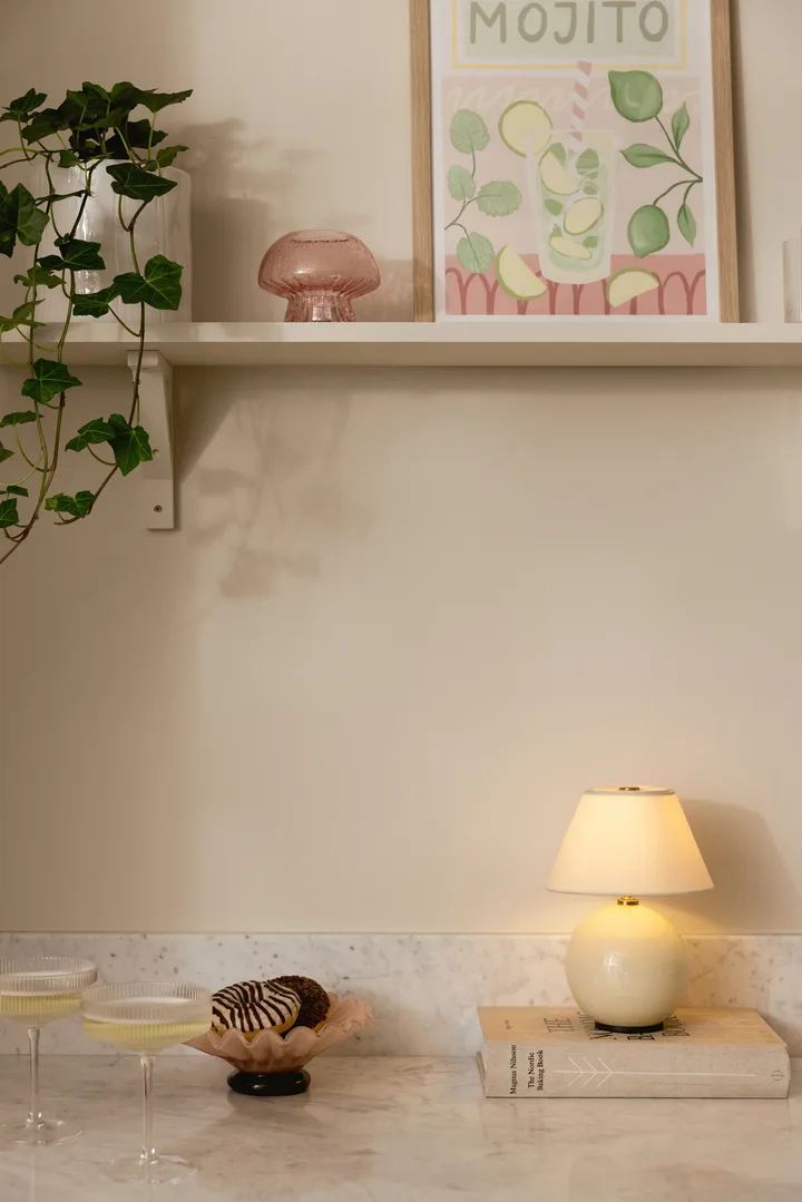 Iris 16 portabel bordlampe fra Globen Lighting er lavet af gennemfarvet glas med unikke indblæste bobler og en matchende bomuldsskærm, der spreder et blødt skær. Den ledningsfrie design gør det nemt at tage lampen med, hvor lyset behøves – fra vindueskarmen til balkonbordet. Med tretrinsdæmper og op til otte timers batteritid bliver Iris en fleksibel lyskilde, der kombinerer klassisk form med moderne funktion og personlig karakter.