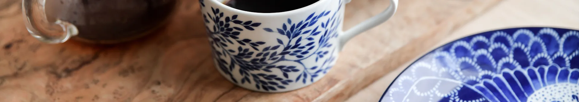 Den svenske virksomhed Götefors Porslin laver statement-porcelæn af høj kvalitet. Her finder du den ikoniske linje Selma designet af Emma von Brömssen, som er dekoreret med blå maling med mønstre af fjer og fugle.