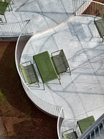 Palissade Dining bænk med armlæn fra HAY er en del af den unikke Palissade-kollektion, designet af Ronan og Erwan Bouroullec. Den er skabt til at harmonere med en række forskellige udendørs miljøer. Denne bænk forener holdbarhed og elegance, hvilket gør den til et fremragende valg til haver og terrasser.