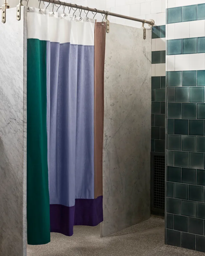 Pivot badeforhæng 180x200 cm fra HAY er et stilrent badeforhæng i bomuld med en vandafvisende overfladebehandling, som tåler op til 20 maskinvask. Dette badeforhæng med grafisk mønster er en hurtig og enkel måde at forny dit badeværelse på.