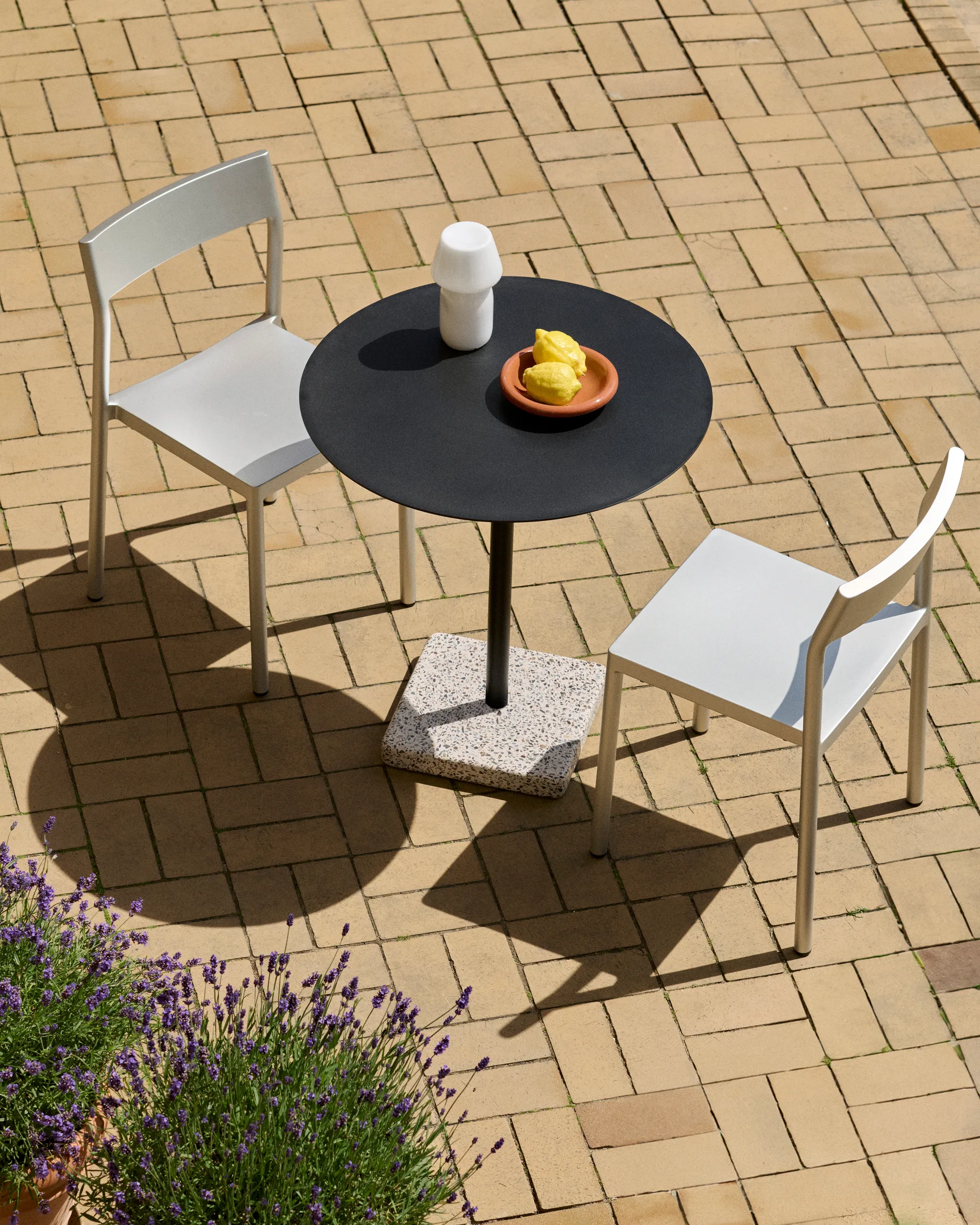 Terrazzo spisebord Ø70 cm fra HAY er en del af Loop Stand-kollektionen designet af Leif Jørgensen. Bordet tilbyder alsidighed og tilpasser sig let både indendørs- og udendørsmiljøer. Med sin karakteristiske terrazzo-base bliver bordet en iøjnefaldende detalje, som også tåler robust brug. Perfekt til dem, der søger et unikt og holdbart bord.