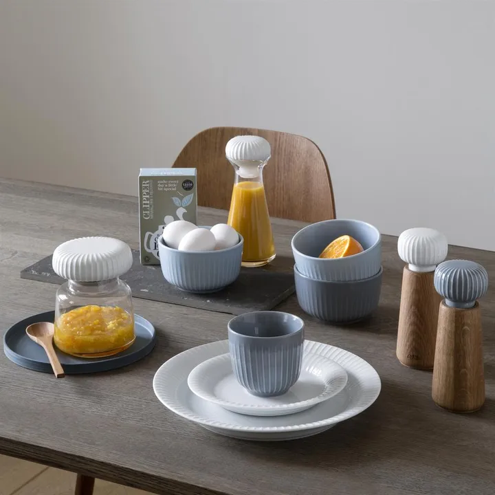 Hammershøi krydderikværn stor fra Kähler er en elegant kombination af træ og keramik, hvor form og funktion mødes i perfekt balance. Designet af Hans-Christian Bauer bærer kværnen seriens karakteristiske riller, inspireret af kunstneren Svend Hammershøis originalvaser fra begyndelsen af 1900-tallet. Det riflede låg i glaseret keramik giver et sikkert greb og rummer den kraftfulde CrushGrind-mekanisme, kendt for sin præcision og holdbarhed. Hammershøi krydderikværn bliver et naturligt indslag på det dækkede bord – tidløs, funktionel og smuk, med den samme skandinaviske harmoni, der gennemsyrer hele serien fra Kähler.