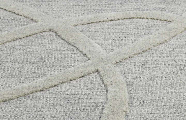 Verbena uldtæppe er et rektangulært tæppe fremstillet af 80% uld og 20% hør. Dette håndvævede tæppe har et organisk flossmønster inspireret af tre overlappende cirkler, som i et Venn-diagram, hvilket giver et blødt og ubesværet udtryk.