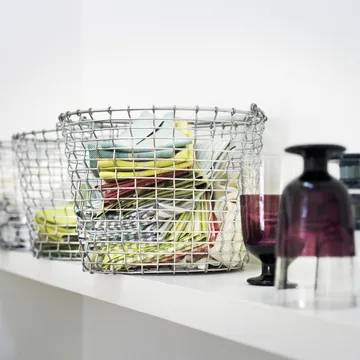 Den prisbelønnede, klassiske kurv, Korbo bucket 16 med en volyme på 16 liter, er perfekt at have med ud i naturen til f.eks at samle frugt i. Kurven er håndlavet i Sverige i enten galvaniseret eller syrefast stål. Det er en meget slidstærk kurv med lang levetid. Fås i flere størrelser og i andre modeller.