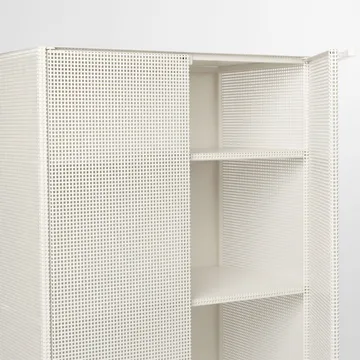 Grid skab fra Kristina Dam Studio kombinerer funktion og æstetik med sine perforerede ståloverflader. Skabet giver en luftig fornemmelse og lader dig se silhuetterne af dine genstande. Det er en smidig og elegant løsning til alle dine opbevaringsbehov derhjemme.