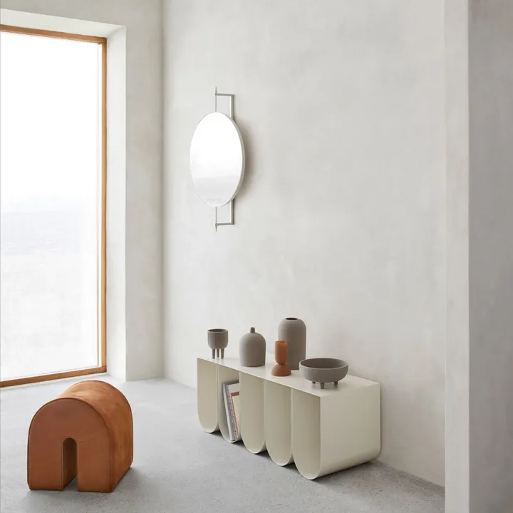 Rotating spejl fra Kristina Dam Studio er et stort vægspejl designet til entréen, stuen eller badeværelset. Med sin roterende funktion kan du nemt ændre perspektivet, hvilket gør det både praktisk og dekorativt. Rammen fås enten i pulverlakeret stål eller rustfrit stål, og det tilbydes i to forskellige størrelser, så det passer til dit hjem.