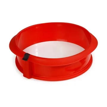Lékué springform med tallerken rød er en aftagelig silikonekageform med keramisk bund til nem bagning og servering. Keramikken er ridsefast, stabil og tåler høje temperaturer. Formens fleksible, men robuste krop har en non-stick-overflade for nem håndtering af kagen. Takket være formsystemets smarte clips og silikontætninger er åbning og lukning problemfri. Server direkte fra ovnen til bordet for en nydelsesfuld oplevelse hver gang.
