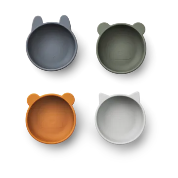 Iggy silikoneskål 4 dele fra Liewood er fremstillet i 100% silikone og passer perfekt til barnets første måltider. Disse silikoneskåle er uskøre, kan tåle opvaskemaskine og prydes med legesyge dyredetaljer. Den kompakte størrelse er ideel til små portioner eller snacks.