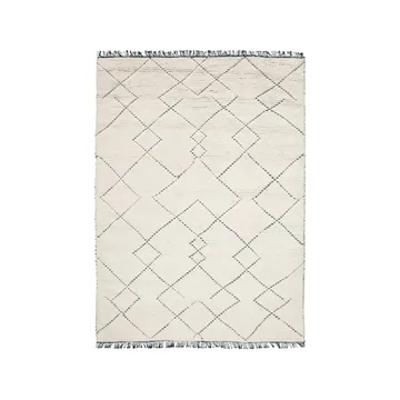 Torun tæppe fra Linie Design er et håndknyttet uldtæppe med et subtilt geometrisk mønster. Den bløde luv giver rummet en indbydende og hyggelig følelse.