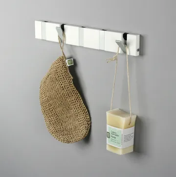 Loca Knax Lite 33 cm komposit fra LoCa er en smart og elegant løsning til entreen eller badeværelset, designet af Harrit & Sørensen. De fjederbelastede kroge klappes nemt ud og holder jakker og håndklæder sikkert — og når de ikke er i brug, går de automatisk ind igen for en ren, pæn væg. Fremstillet i et holdbart kompositmateriale, hvilket gør den både slidstærk og let at holde pæn. Nem at montere med medfølgende skruer, perfekt til dig der vil kombinere funktion og tidløs skandinavisk design i hjemmet.