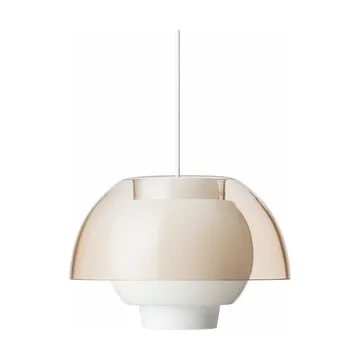 Ergo 250 pendel er en unikt formet lampe designet af Bent Karlby 1971, fremstillet af et trelags opaliseret kernemateriale og en ydre skærm i transparent, farvet glas. Denne charmerende pendel giver et blødt omgivelseslys samtidig med at den afgiver et subtilt, behageligt nedadrettet lys.