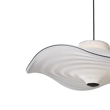 Flying pendel Ø78 cm er en skulpturel loftlampe fremstillet af Made By Hand. Lampeskærmen er lavet af polyester, og basen er af aluminium. Designet af Boris Berlin, ser denne lampe ud til at svæve smukt i luften, når den hænger. Serien Flying tilbyder en organisk form, der giver et blødt indtryk.