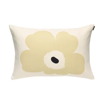 Unikko pudebetræk 40x60 cm fra Marimekko er et smukt pudebetræk designet af Maija Isola med det ikoniske Unikko-mønster. Fremstillet i en ubleget bomuld- og hørblanding og trykt i Helsingfors, giver det rummet en legesyg og kunstnerisk fornemmelse. Betrækket har en skjult lynlås for diskret funktionalitet og består i væsentlig grad af genanvendte naturfibre, hvilket gør det til et bevidst valg til hjemmet. Placér det i sofaen eller i sengen for at tilføre farve og personlighed på en enkel måde.