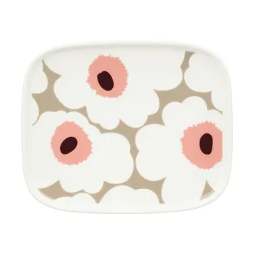 Unikko tallerken 12x15 cm fra Marimekko er en rektangulær asiet pyntet med det ikoniske Unikko-mønster, designet af Maija Isola. Fremstillet i holdbart stentøj, egner den sig både til hverdag og særlige lejligheder — tåler opvaskemaskine, ovn, mikroovn og fryser, hvilket gør den ekstra praktisk i køkkenet. Den enkle form og det iøjnefaldende mønster gør tallerkenen perfekt til servering af småretter, kager eller som en dekorativ detalje på bordet, der fremhæver maden. Fjern mærkaten fra bunden før brug.