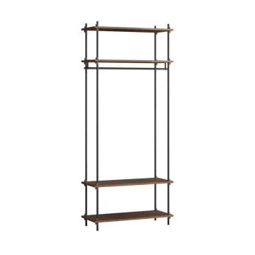 Moebe shelving system s.200.1.F er en elegant hyldeløsning, der skaber et minimalistisk og stilrent udtryk i dit hjem. Fremstillet af højkvalitets egetræ er dette hyldesystem både holdbart og smukt. Den høje reol passer lige godt i entréen som i soveværelset og giver en smuk opbevaring af familiens tøj.
