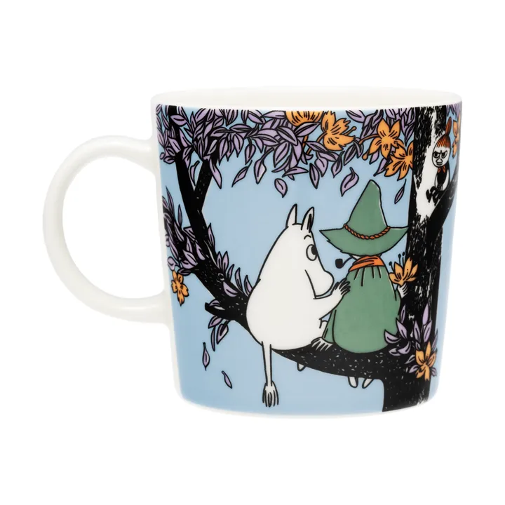 Friends Forever mumikrus fra Moomin Arabia er fremstillet i holdbart hvidt porcelæn og rummer 0,3 liter af din yndlingsdrik. Inspireret af Snusmumrikens tilbagevenden viser kruset Mumintrollet og Lille My på en legesyg jagt gennem Mumidalen. Perfekt til hverdagens små eventyr eller som en særlig gave, byder det på eventyrlig nostalgi fra Tove Janssons magiske verden.