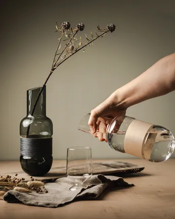 Veneer karaffel 1 L fra Muurla er en moderne kombination af finsk design, glas og birkefiner, som løfter både hverdagsbordet og festdækningen. Den elegante form gør karaffen let at hælde af, mens trædetaljen giver et varmt, naturnært udtryk. Perfekt til vand, saft eller drikkevarer, som du vil servere med omhu. En smuk og funktionel detalje at have fremme på bordet eller på serveringsbakken, når gæsterne kommer.