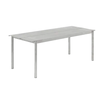 Linear steel table bord 200 cm er designet af Thomas Bentzen for Muuto og er et moderne, men samtidig tidløst spisebord til både indendørs og udendørs brug. Bordet er svenskproduceret og pulverlakeret med en mat, vejrbestandig farve. Det rene æstetiske udtryk får en distinkt karakter takket være de subtile detaljer i samspillet mellem de forskellige komponenter i møblet. Overvej at kombinere det stilrene bord med den længere variant af havebænken i Linear-serien, som er tilpasset til at blive opbevaret under bordet når den ikke er i brug.