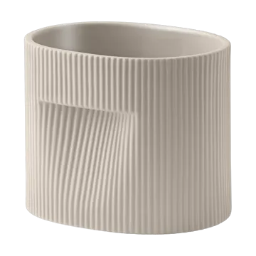 Ridge urtepotte 15 cm fra Muuto er fremstillet i stentøj med en mat overflade og en glaseret inderside, hvilket giver et solidt og harmonisk udtryk. Den subtile rillede kant og de diskrete håndtag gør den både stilfuld og praktisk. Perfekt til mindre planter, krydderurter eller sukkulenter, og passer lige godt på en vindueskarm som på et skrivebord eller en hylde. En tidløs detalje, der løfter rummet og skaber en naturlig balance i indretningen.