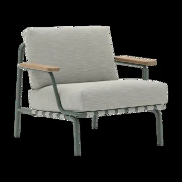 Settle Lounge Chair loungelænestol fra Muuto er fremstillet med en luftig ramme i stål og armlæn i FSC‑certificeret træ, hvilket skaber en harmonisk balance mellem lethed og stabilitet. De gennemtænkte detaljer giver et indbydende udtryk fra alle vinkler. De generøse hynder, fremstillet til at tåle vejr og vind, giver høj komfort og gør lænestolen til et ideelt sted for afslapning. Perfekt til lange stunder med hvile, både alene og i godt selskab.