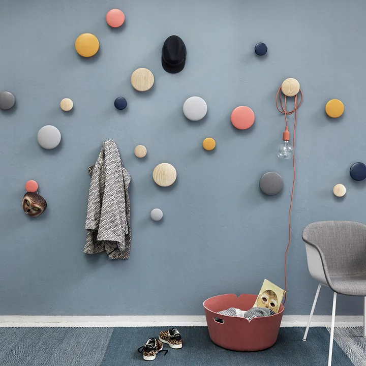 The Dots fra Muuto er en multifunktionel knage som skrues fast på væggen i præcis det mønster, du ønsker. Du vælger, om du vil bruge en eller ti Dots og hvis du ønsker at matche forskellige størrelser og farver. Ideel både i entré, soveværelse og køkken!