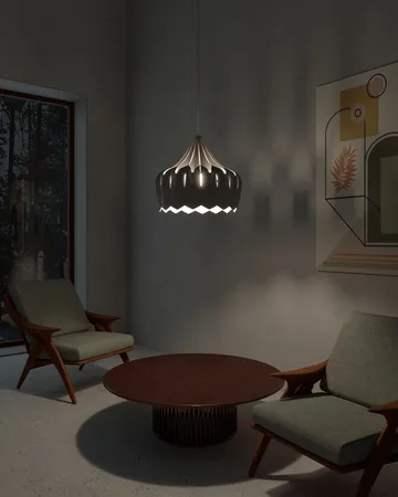 Pioni pendel L Ø52 cm fra Pilke er en stor loftslampe i birk, som har et organisk design, der minder om en blomst. Lampen er håndlavet i Finland, og man har formået at skabe den smukke form uden brug af lim eller skruer under fremstillingen. Pendlen passer godt over dit soveværelse eller din stue, og når du tænder lampen, skabes et naturligt blødt lys og en behagelig atmosfære.