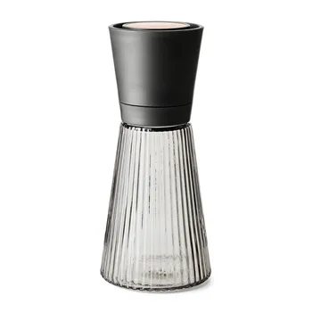Grand Cru Nouveau salt- og peberkværn fra Rosendahl er en elegant kværn i maskinblæst glas, som giver bordet både funktion og form. Den røgfarvede, geometriske design sammen med den sorte top skaber et tydeligt udtryk i køkkenet og løfter borddækningen. Kværnen er nem at bruge — mekanismen sidder øverst, hvilket gør, at den står stabilt på bordet uden at efterlade rester. Perfekt til dem, der ønsker en smuk, gennemtænkt detalje, som gør hverdagsmadlavning og middagsstunder lettere.