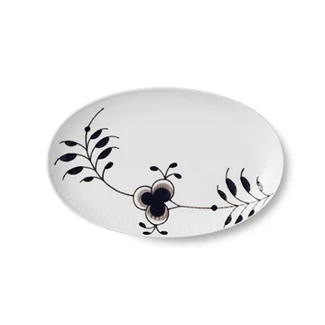 Mønstret Sort Mega Riflet fra Royal Copenhagen er en nyfortolkning af det klassiske mønster Musselmalet blå og er designet af Karen Kjældgård-Larsen, der dengang det blev designet var design studerende. Dette mønster er håndmalet på et smukt ovalt fad, perfekt til særlige lejligheder med nære og kære.