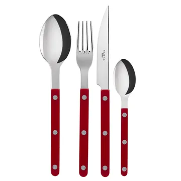 Bistrot bestik skinnende 24 dele fra det franske mærke Sabre Paris er et bestikssæt, der både føles legende og traditionelt. Bestikket er lavet af rustfrit stål med høj kvalitet akryl håndtag i Sabre Paris' egen fabrik i Frankrig. Vælg mellem flere forskellige farver på de ensfarvede håndtag. Sættet indeholder seks spiseskeer, seks spisegaffler, seks spiseknive og seks teskeer, klar til at pryde dit borddækning.