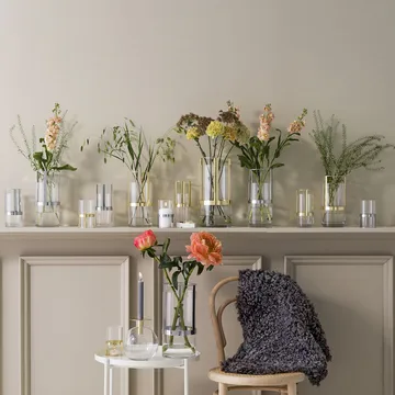 Hold vase lille kommer fra Sagaform og er fremstillet i en klassisk cylinderform, så den passer godt ind i alle slags hjem. Lige smuk på middagsbordet som på vindueskarmen, når du vil forskønne hjemmet med flotte snitblomster. Vasen er lavet af mundblæst glas indrammet af en metalramme.