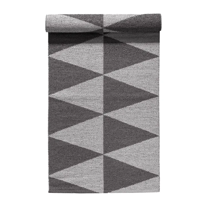 Rime plasttæppe grå fra det svenske mærke Scandi Living er et tæppe fremstillet i PVC og polyser, materialer der gør det meget slidstærkt og nemt at rengøre. Tæppet har et grafisk harlekinmønster inspireret af rimfrost og en smuk grå farve, som passer i de fleste rum. Hvis du hurtigt bliver træt af et udseende, er Rime-tæppet perfekt, da den spejlvendte bagside giver dig et nyt look med en enkel vending. Vælg mellem forskellige størrelser.