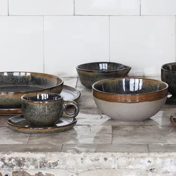 Serveringsskål i stentøj fra Serax-kollektionen Surface, designet af Sergio Herman. Det varierede udseende af glasuren gør hver skål helt unik. Det skiftende udtryk i glasuren gør det nemt at skabe en levende borddækning med meget karakter. Du finder mange forskellige størrelser på skåle og tallerkener i serien Surface, hvilket gør, at du kan skabe en helt unik og personlig servis tilpasset dine behov.