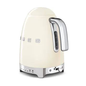 Smeg 50's Style elkedel med variabel temperatur 1,7 L kombinerer rustfrit stål og plast for et retroinspireret design. Serien 50's Style giver dit køkken en nostalgisk følelse, samtidig med at den tilbyder praktiske funktioner som en justerbar termostat og en generøs kapacitet på 1,7 liter.