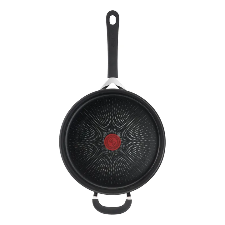Jamie Oliver Quick & Easy stegepande hårdt anodiseret fra Tefal er fremstillet af slidstærkt hårdt anodiseret aluminium og er designet af Jamie Oliver. Quick & Easy stegepanden er perfekt til daglig madlavning og er forsynet med en sikker og slidstærk non stick-belægning, hvilket gør, at der bruges meget lidt fedt ved madlavningen. Den praktiske Thermo-Signal-teknologi angiver, når panden har opnået optimal starttemperatur, så du kan begynde at stege maden. Håndtagene på panden og låget er designet med silikoneovertræk for et stabilt og ergonomisk greb. Glaslåget er forsynet med en indbygget dampventil, og det transparente låg gør, at du nemt kan holde øje med maden. Jamie Oliver Quick & Easy stegepanden har alt, hvad du behøver for at få succes med madlavningen.