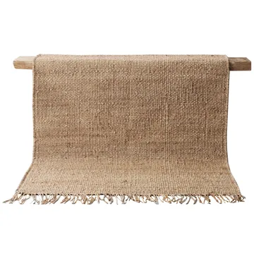Hemp tæppe natur fra Tell Me More er et håndvævet tæppe i 100% hamp med dekorative frynser langs kortsiderne. Hvert eksemplar er omhyggeligt håndvævet og farvet med plantefarve, hvilket giver en varm, naturlig karakter, hvor struktur og nuance kan variere. Den robuste hampkvalitet gør tæppet slidstærkt og nemt at placere – perfekt ved sengen, under et spisebord eller som et naturligt gulvunderlag i din stue. Et tidløst tekstil, der både føles jordnært og indbydende i hjemmet.