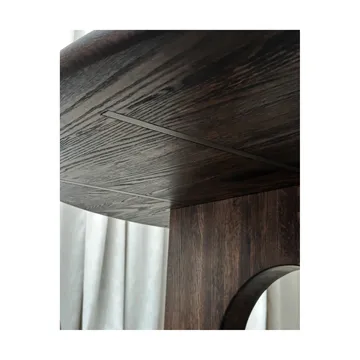 Sanders spisebord Ø160 cm fra Tinted er fremstillet af massivt egetræ og bærer håndværkets sjæl med et moderne præg. Den robuste konstruktion forstærkes af diskret indbyggede metalspor, der giver ekstra holdbarhed uden at tage fokus fra designet. Med sine bløde former og rene linjer skaber bordet en harmonisk balance mellem varme og struktur. Perfekt til lange middage, livlige samtaler eller et roligt øjeblik med en kop kaffe. Et tidløst møbel til alle lejligheder.