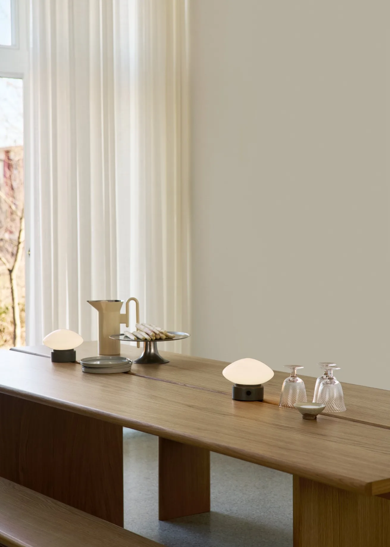 Mist AP21 portabel lampe 12 cm fra &Tradition er en lille, men udtryksfuld lampe, der kombinerer funktionalitet og skulpturel design. Den trådløse konstruktion gør den nem at placere hvor som helst i hjemmet – på sofabordet, i bogreolen eller som stemningsfuld belysning over spisebordet. Den bløde glaskuppel spreder et varmt og behageligt lys, mens den solide base i marmor giver en elegant tyngde og kontrast. En fleksibel og tidløs belysningsløsning, der tilfører både atmosfære og stil til hverdagen.