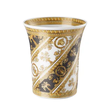Kollektionen Versace I love Baroque er et samarbejde mellem den tyske porcelænsfabrikant Rosenthal og det ikoniske modehus Versace. Denne porcelænsvase prydet med en indviklet guldbemaling emmer virkelig af luksus og elegance. Vasen er fremstillet af slidstærkt feldspatporcelæn på Rosenthals egen fabrik i Tyskland, hvilket resulterer i en perfekt kombination af solidt tysk håndværk og ekstravagant italiensk design. Lad vasen stå fremme som det imponerende håndværk, den er, eller fyld den med smukke mørkerøde roser eller en anden passende blomst.