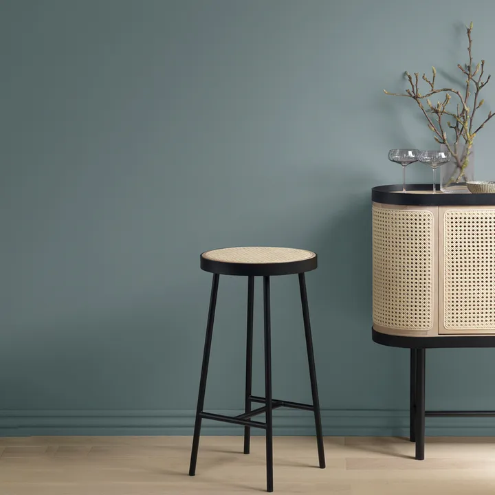 Be My Guest barstol fra Warm Nordic, designet af Charlotte Høncke, kombinerer et stilfuldt sort stålstel med et sæde af rattan. Barstolen tilbyder en fremragende balance mellem materiale og æstetik, hvilket gør den til et perfekt tilbehør til hjemmet.