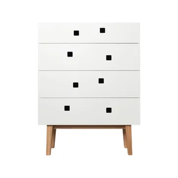 Peep B3 kommode fra Zweed er designet af Håkan Johansson og har fire skuffer, der tilbyder rigeligt med opbevaringsplads. De asymmetriske greb giver en unik visuel effekt samtidig med, at de dæmper skuffernes lukning for en stille og smidig oplevelse. Denne kommode fås i forskellige modeller og farver for at passe til diverse indretninger.