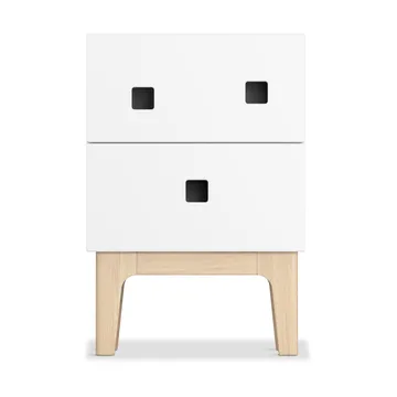 Peep S1 sengebord fra Zweed er designet af Håkan Johansson og udstråler legende elegance med sine asymmetriske håndtag. Skufferne lukker blødt takket være indbyggede dæmpere, hvilket tilføjer en luksuriøs fornemmelse i brugen. Denne del af Peep-serien tilbyder alsidighed med flere modeller, farver og benstel, så du kan finde din unikke stil. Opdag den perfekte balance mellem æstetik og funktion i dette gennemtænkte sengebord.